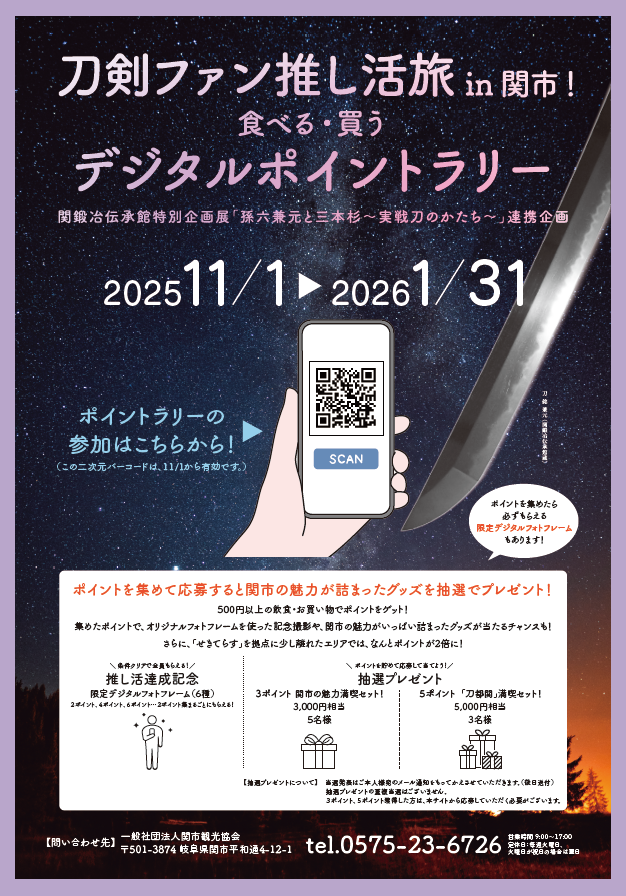 ☎0575-25-1588刃物の町、関市ならではのイベント刀剣ファン推し活旅in関市、11月1日よりスタートです。